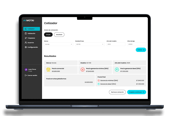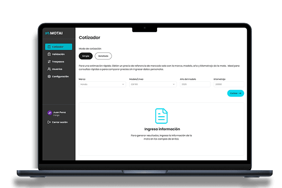 Nuestra plataforma digitaliza el proceso de cotización y traspaso de motos, ofreciendo una experiencia rápida, segura y sin fricciones.